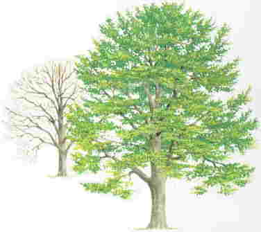 un árbol de hoja caduca. Puede alcanzar los 35 ó 40 m de altura.